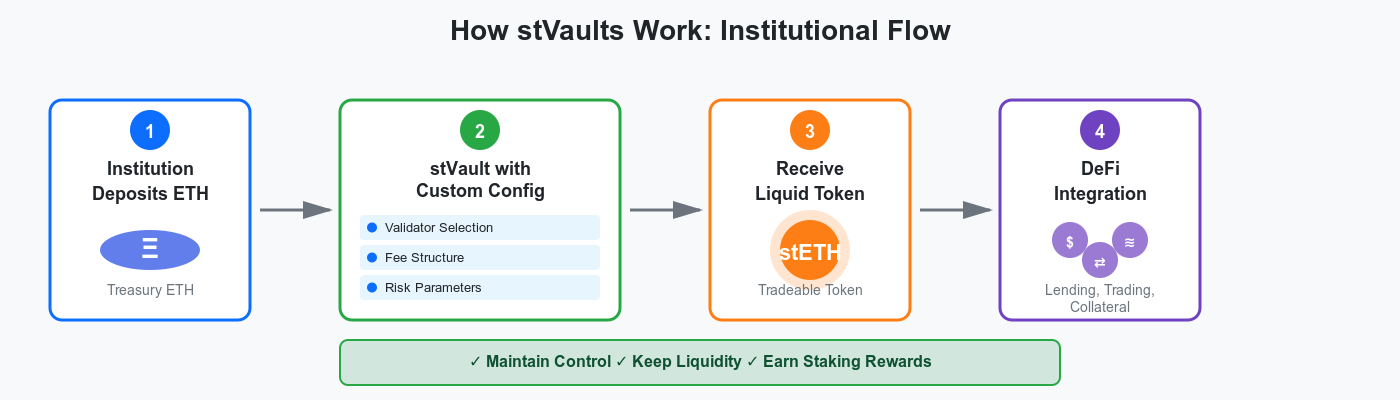 Lido V3 introduces stVaults — customizable staking vaults that bridge institutional requirements with liquid staking efficiency.