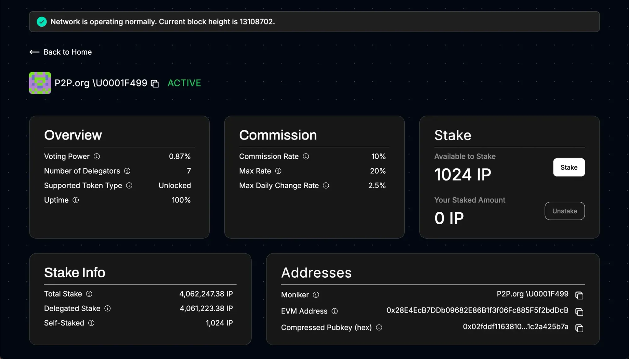 That’s it! Your unlocked $IP is now staked and will begin accruing rewards once active.