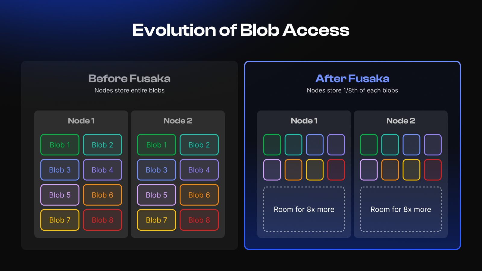 <h2 id="at-a-glance"><strong>At a Glance:</strong></h2><ul><li>Ethereum's Fusaka upgrade combines Prague and Osaka updates for 2025.</li><li>P2P.org is fully prepared for the increased bandwidth, load, and stability requirements introduced by the upgrade.</li><li>Data and execution capacity will be expanded, led by the introduction of PeerDAS.</li><li>Gas limit increase to 60M improves network capacity.</li><li>Rollups get more predictable, higher-throughput data availability; validators face a higher operational baseline.</li></ul><p>Ethereum is evolving, and <a href="http://p2p.org/?ref=p2p.org"><u>P2P.org</u></a> is ready.</p><p>The Fusaka upgrade, scheduled for December 3 2025, represents one of Ethereum's most significant infrastructure improvements since The Merge. By combining the Prague execution layer upgrade with the Osaka consensus layer update, Fusaka delivers meaningful enhancements that directly benefit institutional stakers.</p><p>At P2P.org, we've built our reputation on zero slashing incidents across 40+ networks and 99.9% uptime. As Ethereum continues its evolution, we're ensuring our infrastructure and clients are positioned to capture every advantage.</p><p>Below is a straightforward breakdown of what’s changing and how it reshapes the environment that P2P.org operates in.</p><h2 id="what-fusaka-delivers"><strong>What Fusaka Delivers</strong></h2><h3 id="validator-consolidation"><br><strong>Validator Consolidation</strong></h3><p>The central change in Fusaka is PeerDAS (EIP-7594), which raises the maximum effective balance for validators from 32 ETH to 2048 ETH. For institutional clients managing substantial ETH positions, this is transformative.</p><p>Instead of operating hundreds of individual validators — each requiring separate management and incurring distinct costs — institutions can consolidate operations significantly. A treasury holding 10,000 ETH that previously required 313 validators can now manage the same position with just 5.</p><p>The operational efficiency gains are substantial. Fewer validators mean reduced attestation overhead, lower bandwidth requirements, and streamlined validator management. For institutions running validators through P2P.org's infrastructure, this translates to improved cost efficiency while maintaining the same security guarantees.</p><h3 id="increased-network-capacity"><strong>Increased Network Capacity</strong></h3><p>Fusaka raises Ethereum's default gas limit to 60M, increasing network throughput and improving transaction processing capacity. For institutional clients executing complex DeFi strategies or managing treasury operations, this means more reliable transaction execution during periods of high network activity.</p><h3 id="more-predictable-blob-fees"><strong>More Predictable Blob Fees</strong></h3><p>The upgrade improves the blob fee market mechanism, making Layer 2 data costs more predictable and stable. For institutions utilizing L2 solutions or managing cross-layer strategies, this creates better cost visibility and planning capabilities.</p><h3 id="enhanced-protocol-stability"><strong>Enhanced Protocol Stability</strong></h3><p>Fusaka includes critical stability fixes across the protocol, strengthening Ethereum's infrastructure foundation. These improvements reduce edge-case vulnerabilities and enhance the reliability institutional clients require.</p><p>The operational efficiency gains are substantial. Fewer validators mean reduced attestation overhead, lower bandwidth requirements, and streamlined validator management. For institutions running validators through P2P.org's infrastructure, this translates to improved cost efficiency while maintaining the same security guarantees.</p><h2 id="better-economics-simpler-operations"><strong>Better Economics, Simpler Operations</strong></h2><p>Fusaka's validator consolidation creates immediate benefits for institutional staking strategies:</p><p><strong>Reduced Operational Complexity</strong>: Institutions managing large ETH positions through P2P.org will see dramatic simplification in validator operations, reporting, and compliance tracking.</p><p><strong>Improved Capital Efficiency</strong>: With higher maximum balances, institutional clients can optimize their staking infrastructure costs while maintaining or improving their rewards.</p><p><strong>Enhanced Network Reliability</strong>: The gas limit increase and protocol stability fixes ensure institutional transactions process smoothly, even during peak network usage.</p><p><strong>Better Cost Predictability</strong>: More stable blob fees improve planning for institutions utilizing Layer 2 solutions alongside their staking operations.</p><p><strong>Enhanced Flexibility</strong>: The upgrade enables more sophisticated staking strategies, particularly for treasuries and asset managers who need precise control over large positions.</p><p><strong>Lower Exit Times</strong>: Consolidating validators means fewer individual exits to process, improving liquidity management for institutional clients.</p><h2 id="p2porgs-ethereum-commitment"><strong>P2P.org's Ethereum Commitment</strong></h2><p>Ethereum has been central to P2P.org's mission since our founding. We've secured billions in ETH for institutional clients with zero slashing incidents — a track record that becomes even more valuable as validator stakes increase.</p><p>As Fusaka rolls out, P2P.org's infrastructure is already prepared. Our institutional clients will benefit from:</p><ul><li><strong>Seamless migration</strong> support for validator consolidation</li><li><strong>Zero downtime</strong> during the upgrade transition</li><li><strong>Optimized validator configurations</strong> that maximize Fusaka's benefits</li><li><strong>Continued SOC 2 Type II compliance</strong> throughout the upgrade process</li></ul><p>Our technical team is working directly with Ethereum client developers and has thoroughly tested Fusaka functionality across our infrastructure.