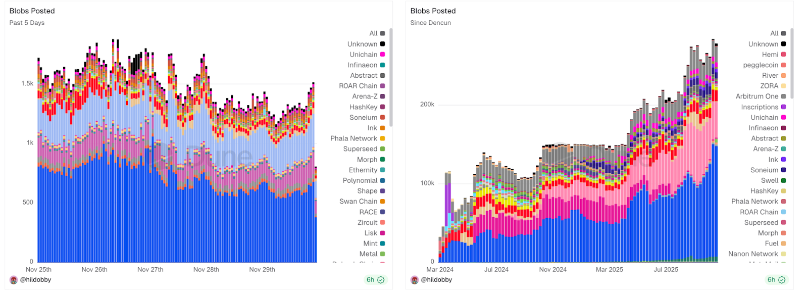Rollups publish compressed transaction data to Ethereum in the form of “blobs.”Since Dencun, this has been the cheapest and most scalable way to anchor L2 activity on-chain.