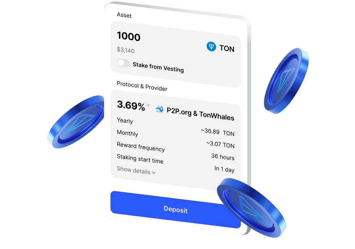 The TON Network generates staking rewards in two ways: Inflation (generation of new TON) and transaction fees (collected for processing transactions). By staking your TON (Toncoin), you actively contribute to the network's security while earning a share of the rewards generated.